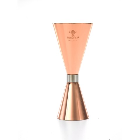 Barfly® Slim Style Jigger, 1 & 2 oz., with internal marking lines, stainless steel center band, mirror finish exterior, satin finish interior, copper plated