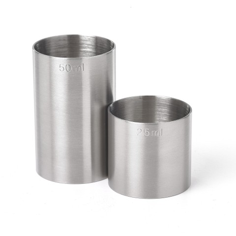 Barfly® Thimble Measure Set, 2-piece, includes (1) each: 25 ml. (0.84 oz.) & 50 ml. (1.69 oz.), seamless tubes, welded bottoms, 18/8 stainless steel, satin finish
