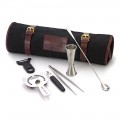 Barfly® Essentials Set, 7-piece, includes: (1) mixology roll, (1) 1 oz. x 2 oz jigger, (1) 13-3/16" bar spoon, (1) heavy-duty spring bar strainer, (1) 9-3/8" Precision Plus™ straight tong, (1) black y-peeler, (1) channel knife, stainless steel