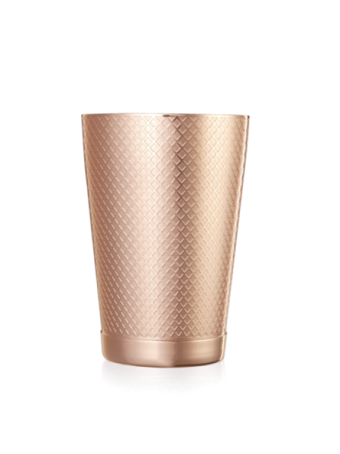 Barfly® Diamond Lattice Shaker, 18 oz., 3-1/2" dia. x 5"H, capped bottom, 18/8 stainless steel, satin finish interior, copper-plated exterior finish, intricate etched pattern design