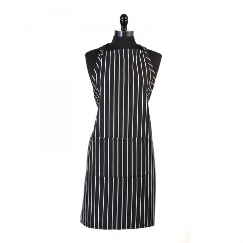 Genesis Bib Apron, 33" x 23", with pocket, adjustable neck strip, 65/35 poly/cotton twill, black Chalk Stripe