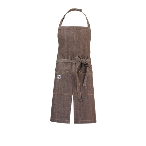 Metro Edge® Bib Apron, 30" x 34", 43" ties, split front, (2) large pockets, adjustable neck strap, 100% cotton denim, brown