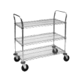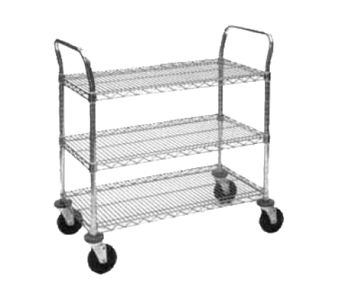 SP Heavy Duty Utility Cart, standard unit, 36"W x 24"D x 39"H, (3) wire shelves, plastic split sleeves (2) one-piece handles, donut bumpers & 5" resilient rubber casters, Brite (zinc) finish, NSF