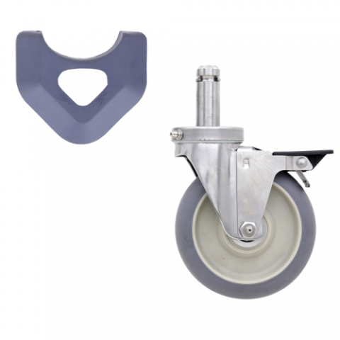 MetroMax® Stainless Steel Stem Caster, swivel (with foot operated brake), 5" dia., 1-1/4"W face, 250 lb. capacity, corrosion resistant, high modulus donut, TPR wheel tread, stainless steel bearings (donut bumpers included)