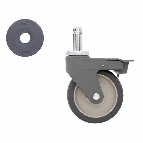 Quick Ship - Super Erecta® Stem Caster, swivel (with foot operated brake), 5" dia., 1-1/4" face, 300 lb. capacity, corrosion resistant, polyurethane flat wheel tread, polymer horn, includes bumper