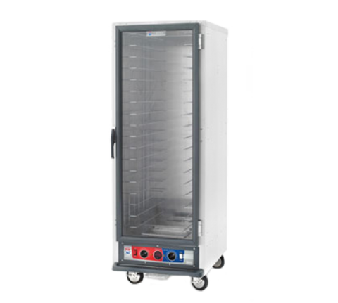 C5™ 1 Series Heated Holding Cabinet, mobile, full height, non insulated, clear polycarbonate door, removable bottom mount control module, thermostat to 190°F, universal wire slides on 3" centers, adjustable on 1 1/2" increments (18) 18" x 26" or (34) 12" x 20" x 2 1/2" pan capacity, 5" casters (2 with brakes), aluminum, 120v/60/1 ph, 2000 watts, 16 amps, NEMA 5 20P, cULus, NSF