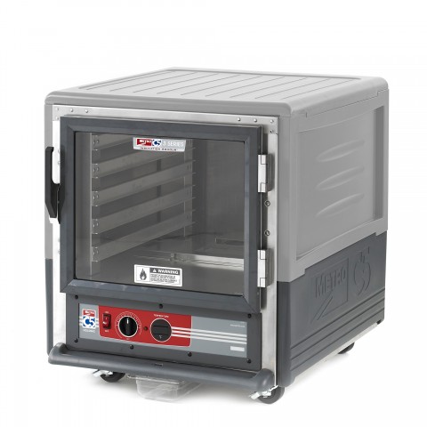 C5™ 3 Series Heated Holding Cabinet, lower wattage, with Gray Insulation Armour™, mobile, under counter, insulated, clear polycarbonate door, removable bottom mount control module, thermostat to 200°F, lip-load slides on 1-1/2" centers, (10) 18" x 26" pan capacity, 3" casters (2 with brakes), aluminum, 120v/60/1-ph, 1400 watts, 12 amps, NEMA 5-15P, cULus, NSF