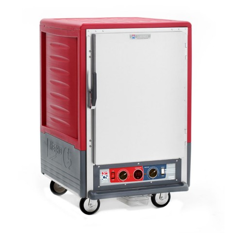 C5™ 3 Series Heated Holding & Proofing Cabinet, with Red Insulation Armour™, mobile, half height, insulated cabinet & door, removable bottom mount control module, thermostat to 200°F, fixed wire slides on 3" centers (8) 18" x 26" or (16) 12" x 20" x 2-1/2" pan capacity, 5" casters (2 with brakes), aluminum, 120v/60/1-ph, 2000 watts, 16.7 amps, NEMA 5-20P, cULus, NSF