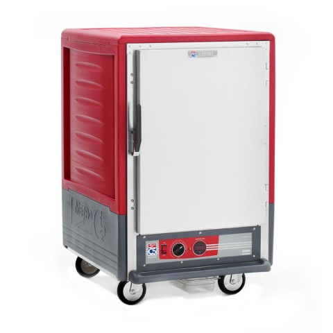 C5™ 3 Series Heated Holding Cabinet, with Red Insulation Armour™, mobile, half height, insulated cabinet & door, removable bottom mount control module, thermostat to 200°F, universal wire slides on 3" centers, adjustable on 1 1/2" increments (8) 18" x 26" or (16) 12" x 20" x 2 1/2" pan capacity, 5" casters (2 with brakes), aluminum, 120v/60/1 ph, 2000 watts, 16.7 amps, NEMA 5 20P, cULus, NSF