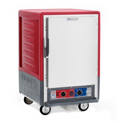 C5™ 3 Series Moisture Heated Holding & Proofing Cabinet, with Red Insulation Armour™, mobile, half height, insulated cabinet & door, removable bottom mount control module, thermostat to 200°F & moisture control, universal wire slides on 3" centers, adjustable on 1-1/2" increments (8) 18" x 26" or (16) 12" x 20" x 2-1/2" pan capacity, 5" casters (2 with brakes), aluminum, 120v/60/1-ph, 2000 watts, 16.7 amps, NEMA 5-20P, cULus, NSF