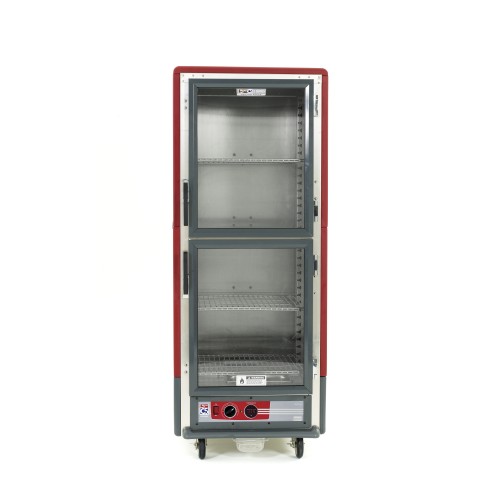 C5™ 3 Series Heated Holding Cabinet, Shelves Only, lower wattage, with Red Insulation Armour™, mobile, full height, insulated, Dutch clear polycarbonate doors, removable bottom mount control module, thermostat to 200°F, 4 adjustable wire shelves, 5" casters (2 with brakes), aluminum, 120v/60/1 ph, 1440 watts, 12 amps, NEMA 5 15P, UL, CUL, NSF