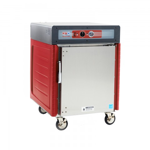C5™ 4 Series with Insulation Armour™ Plus, mobile heated holding cabinet, half height, insulated solid door, top mount controls, thermostat to 200°F, lip load slides on 1-1/2" centers, (16) 18" x 26" pan capacity, 5" casters, stainless steel, 120V/60/1, 1400 watts, 11.7 amps, NEMA 5-15P, cULus, NSF, ENERGY STAR®