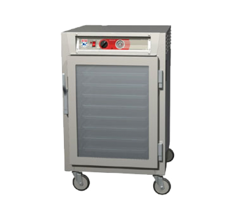 C5™ 6 Series Heated Holding Cabinet, mobile, half height, insulated, double pane tempered glass doors, top mount controls & analog thermometer, ducted heating system, thermostat 70° to 200°F temp, lip load (17) 18" x 26" pan capacity, 1-1/2" wire slides, 5" casters (2 with brakes), 304 stainless steel, 120v/60/1-ph, 2000 watts, 16.7 amps, NEMA 5-20P, cULus, NSF, ENERGY STAR®