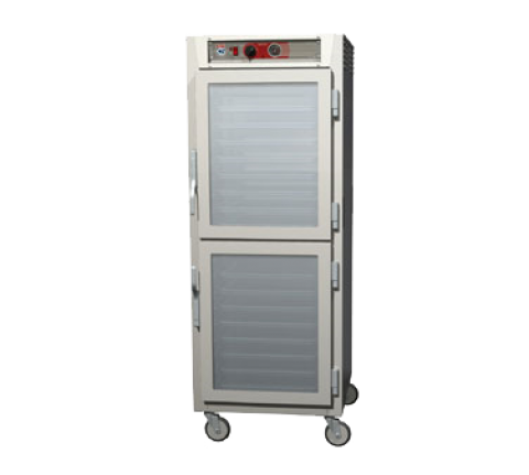 C5™ 6 Series Heated Holding Cabinet, mobile, full height, insulated, Dutch double pane tempered glass doors, top mount controls & analog thermometer, ducted heating system, thermostat 70° to 200°F temp, universal wire (17) 18" x 26" or (32) 12" x 20" x 2-1/2" pan capacity, 1-1/2" adjustable wire slides, 5" casters (2 with brakes), 304 stainless steel, 120v/60/1-ph, 2000 watts, 16 amps, NEMA 5-20P, cULus, NSF