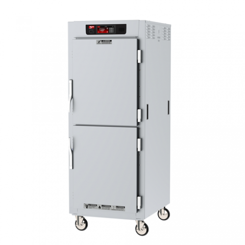 C5™ 8 Series Controlled Temperature Holding Cabinet with 6.8" touch-screen controls, mobile, full height, pass thru, insulated, solid dutch doors, lip load, (17) 18" x 26" pan capacity, 3" O.C., 5" casters, 304 stainless steel, 120v/60/1-ph, 1440 watts, 12 amps, NEMA 5-15P, cULus, NSF, Made in USA