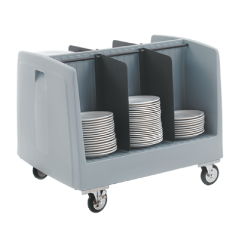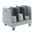 Poker Chip Polymer Dish & Tray Cart, side-load, 38-15/16" x 31-7/8" x 28-1/8", holds up to (60) dishes or (80) trays per column, recessed handles, vinyl dust/splash cover, 5" neoprene swivel casters (2 with brakes) polymer construction, Microban® antimicrobial product protection, NSF