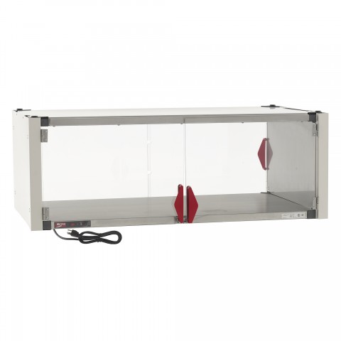 Super Erecta® Hot Enclosed Heated Shelf Kit, includes: (1) 48"W x 24"D heated shelf, with powdercoated side panels, clear polycarbonate sliding front doors, clear hinged rear doors, adjustable thermostat to 200°F max temperature, (1) non-heated, stainless steel top shelf, (4) split sleeves, 120v/60/1-ph, 600 watts, 5.0 amps, cord & NEMA 5-15P, NSF, cULus, Made in USA