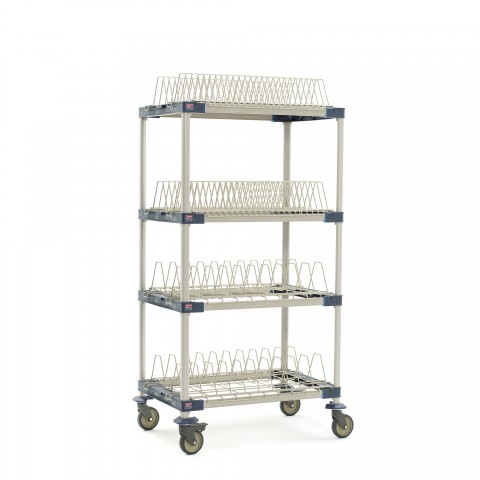 MetroMax® 4 Mobile Drying Rack Unit, 36"W x 24"D x 68"H, 4-tier, for trays/cutting boards/sheet pans & steam pans, includes: (4) open shelf frames, (4) 63" mobile posts, (2) cutting board/tray drying racks, (2) pan racks, (4) polymer swivel casters (2 with brakes), built in Microban® antimicrobial product protection, NSF