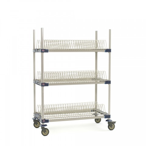 MetroMax® 4 Mobile Drying Rack Unit, 48"W x 24"D x 68"H, 3-tier, for trays/cutting boards/sheet pans, includes: (3) open shelf frames, (4) 63" mobile posts, (3) cutting board/tray drying racks, (4) polymer swivel casters (2 with brakes), built in Microban® antimicrobial product protection, NSF
