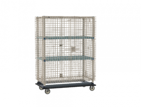 MetroMax® Q Security Unit, mobile, 51-1/8"W x 28-1/16"D x 68-1/2"H, (2) intermediate shelves, mounted on dolly with (2) 5PB & (2) B5PB casters casters & wraparound bumper, NSF