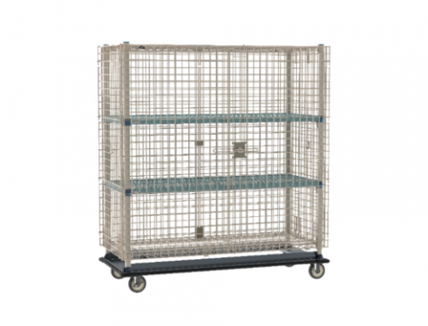 MetroMax® Q Security Unit, mobile, 63-1/8"W x 28-1/16"D x 68-1/2"H, (2) intermediate shelves, mounted on dolly with (2) B5P & (2) B5PB casters & wraparound bumper, NSF
