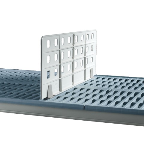 Quick Ship - Universal Shelf Divider, light duty, 18 - 21"W x 8"H, for grid or wire shelving, three-piece design, clips into place, polymer, NSF