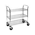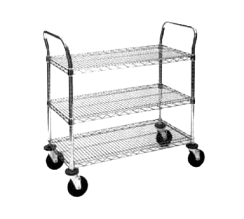 MW Standard Duty Utility Cart, MW700 series, open design (3) wire shelves, shelf size 24"W x 18"D, chrome plated steel frame with (2) push handles, with (4) swivel/ resilient tread casters, NSF
