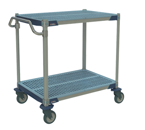 MetroMax® i Utility Cart, (2) shelves, open base, shelf size 30"W x 18"D, 40"H, 900 lb. capacity, with Microban® antimicrobial product protection, stainless steel handle (4) corrosion resistant 5PCX casters with 5" (127mm) polyurethane wheels, NSF