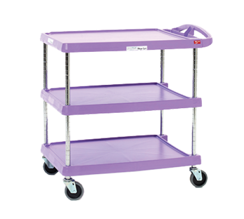 Quick Ship - Allergen free Zone myCart™ Series Utility Cart, (3) shelves, open base, 34-3/8"W x 23-7/16"D x 35-1/2"H, heavy duty plastic shelf, with (4) swivel/resilient tread casters, (3) shelf cart has a 400 lb. capacity per unit, purple, NSF