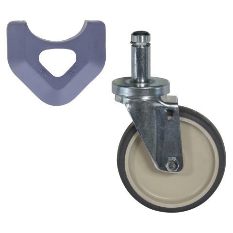 MetroMax® Stem Caster, TAA Compliant, swivel, 5" dia., 1-1/4" face, 250 lb. capacity, TPR flat wheel tread, chromate plated rig, includes bumper for a MetroMax post, NSF