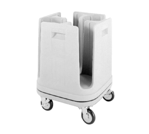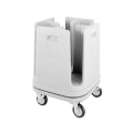 Poker Chip Dish Dolly, 21-1/2"W x 21-1/2"D x 31-15/16"H, non-adjustable, (240) max dish: size 8-1/4" (4) columns (approx 60 dishes/column), 2-handed acess, recessed handles, 5"Dia. swivel casters (2 with brakes) with neoprene wheels, chip-resistant polymer shell with Microban® antimicrobial protection, aesthetic blue, vinyl dust/water splash cover, NSF