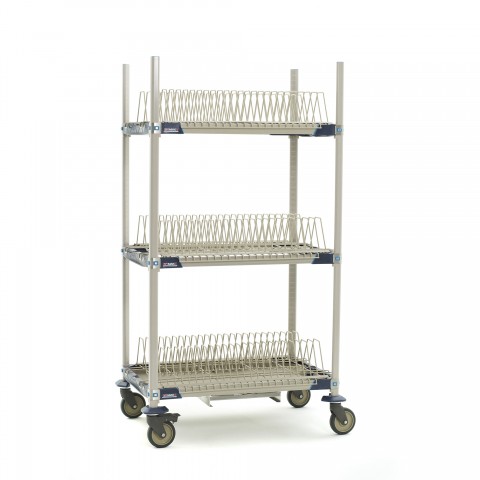 MetroMax® i Mobile Drying Rack Unit with Drip Tray, 36"W x 24"D x 68"H, 3-tier, for trays/cutting boards/sheet pans, includes: (3) open shelf frames, (4) 63" mobile posts, (3) cutting board/tray drying racks, (1) adjustable drip tray, (4) polymer swivel casters (2 with brakes), built in Microban® antimicrobial product protection, NSF