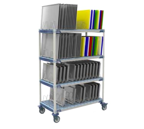 MetroMax® i Mobile Drying Rack Unit, 48"W x 24"D x 68"H, 4-tier, includes: (4) shelves, (4) 63" mobile posts, (2) cutting board/tray drying racks, (2) pan racks, (4) polymer swivel casters (2 with brakes), built in Microban® antimicrobial product protection, NSF