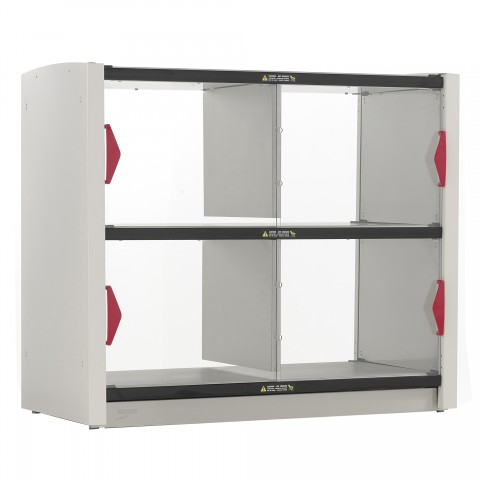 Metro2Go Order Hot Station, (4) compartments, each 19"W x 18"D x 14.7"H, (2) individually controlled stainless steel shelves, pass-thru, sliding front polycarbonate doors, open back, powdercoated side panels, adjustable thermostat to 200°F max temperature, 120v/60/1-ph, 800 watts, 6.7 amps, cord & NEMA 5-15P, NSF, cULus, Made in USA