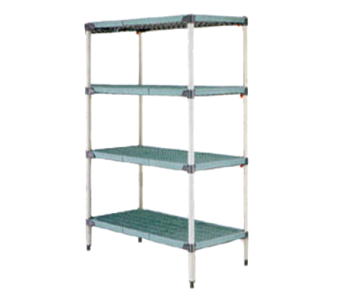 MetroMax® Q Starter Shelving Unit, 24"W x 24"D x 63"H, 800 lb. capacity per shelf, 2000 lb. capacity per unit, (4) quick-adjust shelves with removable polymer open-grid shelf mats and epoxy coated one-piece steel frames, (4) polymer posts, Microban antimicrobial product protection, KD, NSF