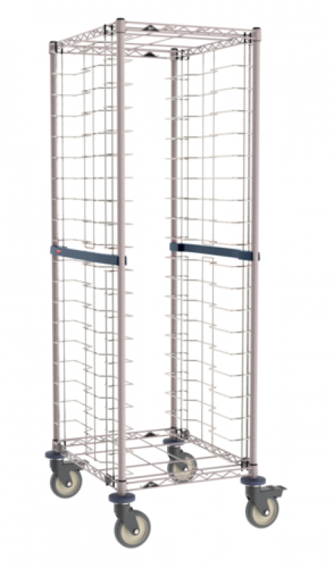Wire Bun Pan Rack, mobile, end load, 23-1/4"W 28-3/4"D x 69"H, (20) 18" x 26" pan capacity, slides on 3" centers, brite zinc finish, 5" swivel casters, NSF, UPS