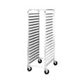 Pan Rack, mobile, end load, single section, 20-3/8"W x 64-1/8"H, 28"D, open sides, with slides for (11) 18" x 26" or (22) 14" x 18" pans, slides on 5" centers, riveted tubular aluminum frame, 5" swivel casters (2) with brake, KD, NSF