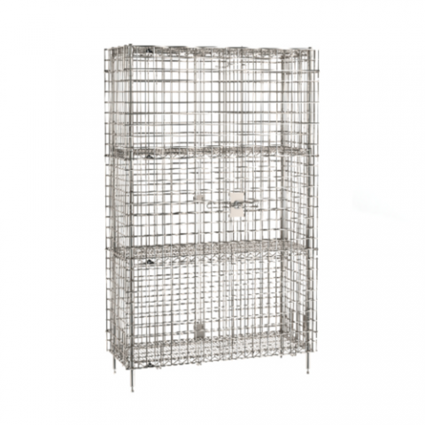 Super Erecta® Security Unit, stationary, stainless steel finish, 50-1/2"W x 21-1/2"D x 66-13/16"H, (2) intermediate shelves, NSF