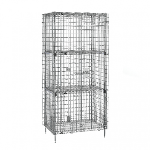 Super Erecta® Security Unit, stationary, chrome plated finish, 38-1/2"W x 27-1/4"D x 66-13/16"H, (2) intermediate EZ-Add shelves, NSF