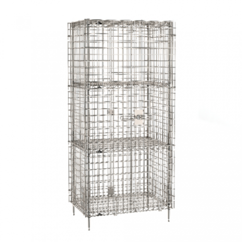 Super Erecta® Security Unit, stationary, stainless steel finish, 38-1/2"W x 27-1/4"D x 66-13/16"H, (2) intermediate shelves, NSF