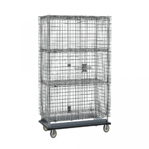 Super Erecta® Security Unit, mobile, 50-1/2"W x 28-1/16"D x 68-1/2"H, (2) doors open 270° & secure to sides, (2) intermediate shelves, aluminum dolly with wrap-around bumper, (2) 5PB & (2) B5PB casters, chrome plated finish, ships KD, NSF