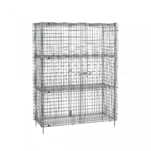 Super Erecta® Security Unit, stationary, chrome plated finish, 62-1/2"W x 27-1/4"D x 66-13/16"H, (2) intermediate shelves, NSF