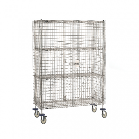 Super Erecta® Security Unit, mobile, stainless steel finish, standard duty, 65"W x 27-1/4"D x 62"H, (2) intermediate shelves, 5-1/2" donut bumpers (desired stem casters must be ordered separately), NSF