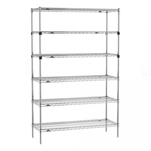Super Erecta® Starter Shelving Unit, 48"W x 18"D x 74"H, (6) tiers, (4) Super Erecta wire shelves, (2) EZ-ADD shelves, (4) posts, chrome plated finish, KD, NSF