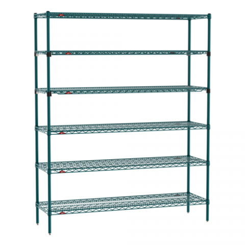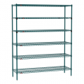 Super Erecta® Starter Shelving Unit, 60"W x 18"D x 74"H, (6) tiers, (4) Super Erecta wire shelves, (2) EZ-ADD shelves, (4) posts, Metroseal 3 Green epoxy coated corrosion-resistant finish with Microban® antimicrobial protection finish , KD, NSF