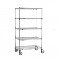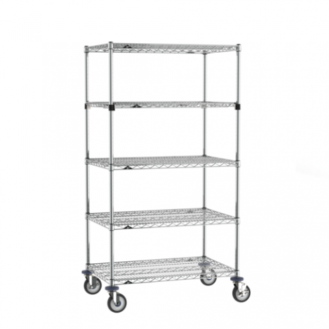 Super Erecta® Stem Caster Cart, 36"W x 24"D x 68"H, 5 tiers, (4) Super Erecta wire shelves, (1) EZ-ADD shelf, (4) posts, chrome plated finish, (2) swivel & (2) swivel/brake casters with polyurethane treads and chrome plated rigs, KD, NSF