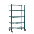 Super Erecta® Stem Caster Cart, 36"W x 24"D x 68"H, 5 tiers, (4) Super Erecta wire shelves, (1) EZ-ADD shelf, (4) posts, Metroseal 3 Green epoxy coated corrosion-resistant finish with Microban® antimicrobial protection finish , (2) swivel & (2) swivel/brake casters with polyurethane treads and chrome plated rigs, KD, NSF