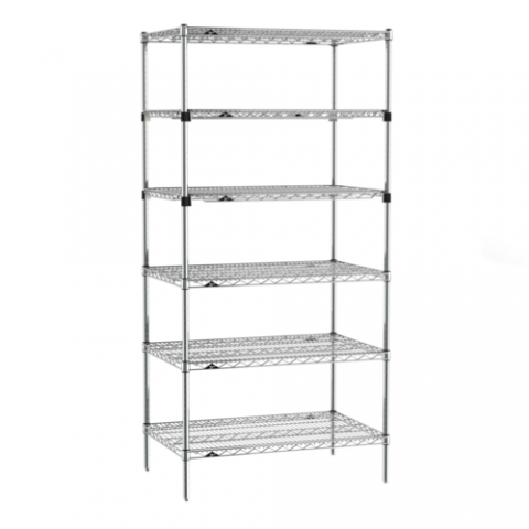 Super Erecta® Starter Shelving Unit, 36"W x 24"D x 74"H, (6) tiers, (4) Super Erecta wire shelves, (2) EZ-ADD shelves, (4) posts, chrome plated finish, KD, NSF