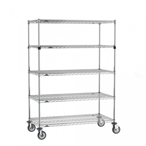 Super Erecta® Stem Caster Cart, 48"W x 24"D x 68"H, 5 tiers, (4) Super Erecta wire shelves, (1) EZ-ADD shelf, (4) posts, chrome plated finish, (2) swivel & (2) swivel/brake casters with polyurethane treads and chrome plated rigs, KD, NSF