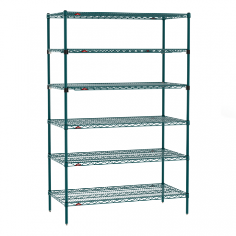 Super Erecta® Starter Shelving Unit, 48"W x 24"D x 74"H, (6) tiers, (4) Super Erecta wire shelves, (2) EZ-ADD shelves, (4) posts, Metroseal 3 Green epoxy coated corrosion-resistant finish with Microban® antimicrobial protection finish , KD, NSF